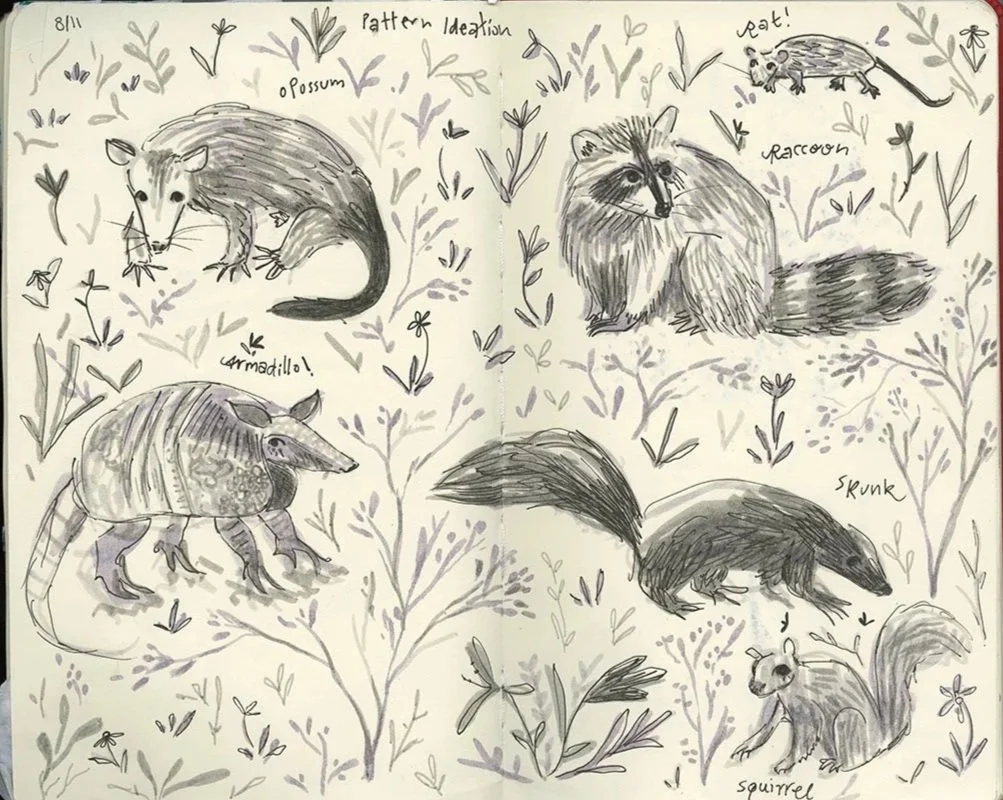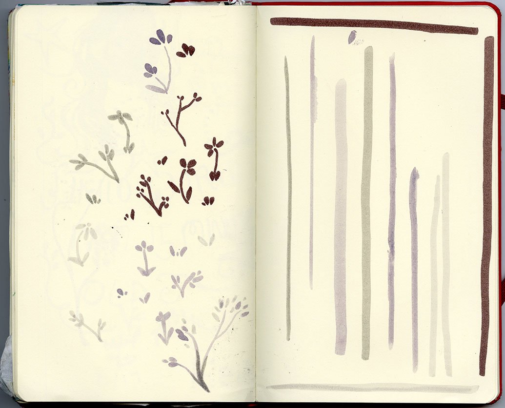 Created by scanning in sketch pages, Blissful Branches is a collection featuring traditionally illustrated motifs using water-based markers, and digitally arranged in Adobe Photoshop.