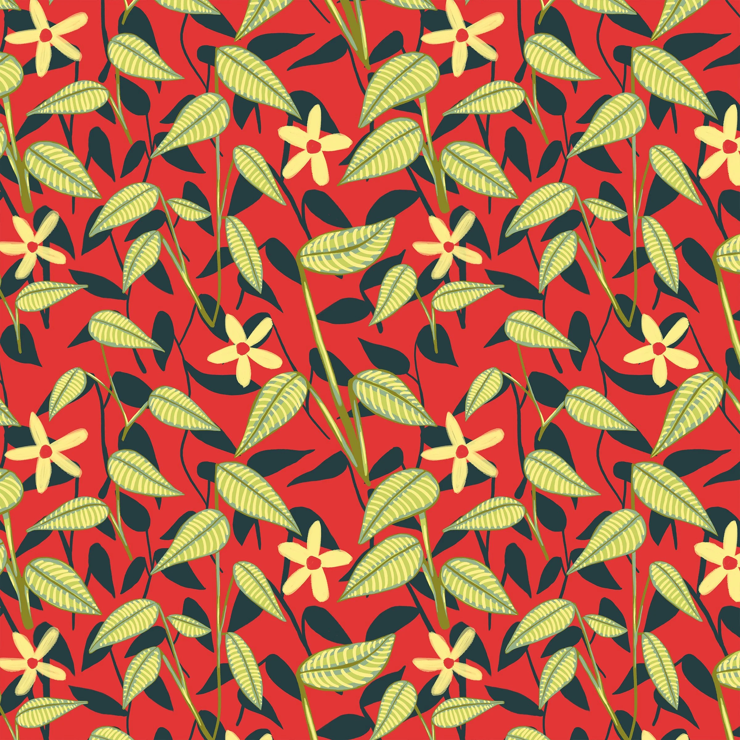 Scarlet Meadow is a mini collection that I created during winter break 2024! Fully inspired by a sketchbook page I had created using my new acrylic markers. My third pattern collection, big or small, I ever created, featuring a hero pattern, coordinate pattern, and a coordinating stripe!